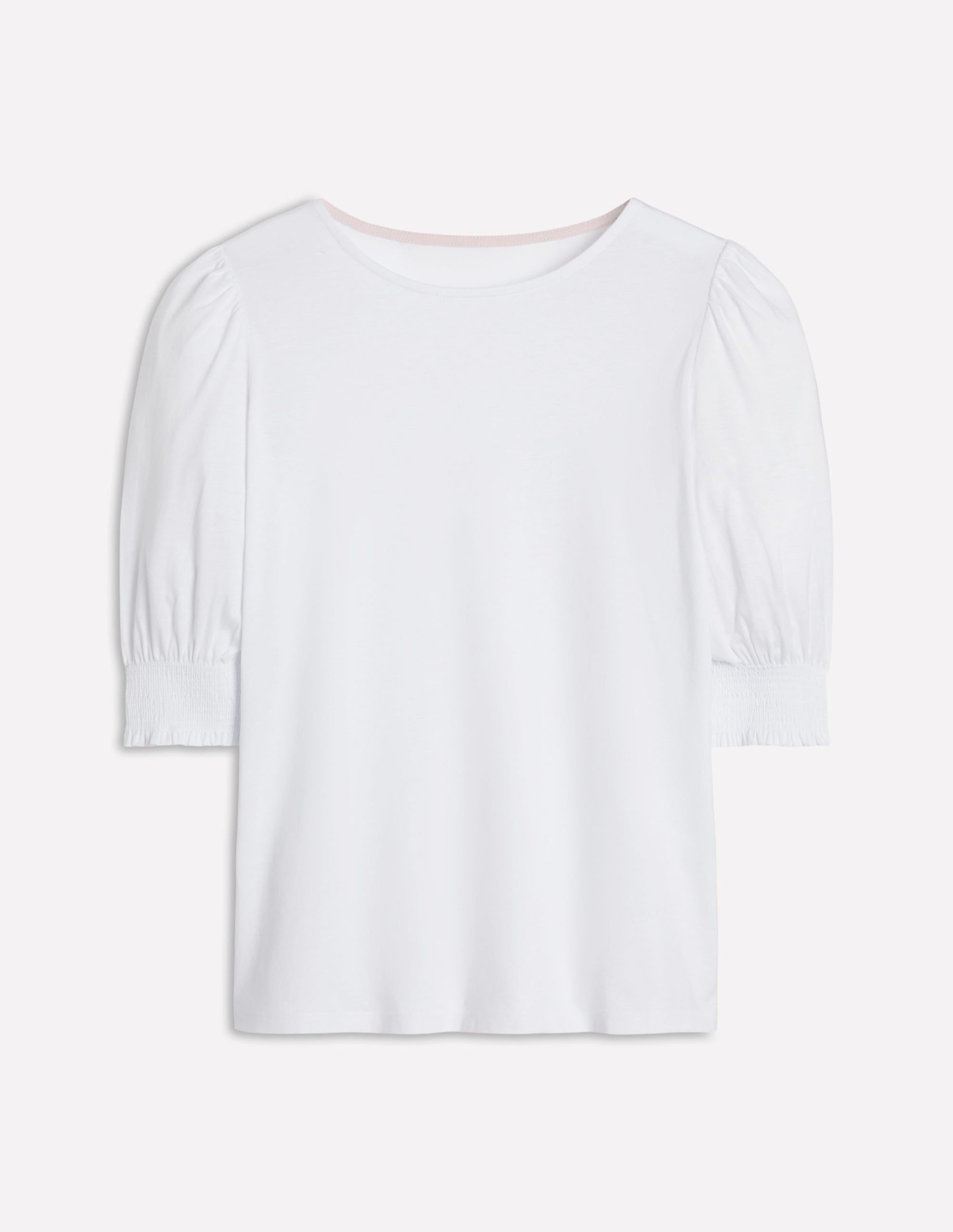 Update your usual jeans and a tee combo with our latest take on the short-sleeve top ??the puff sleeves with smocked cuffs make it ideal for work or play.