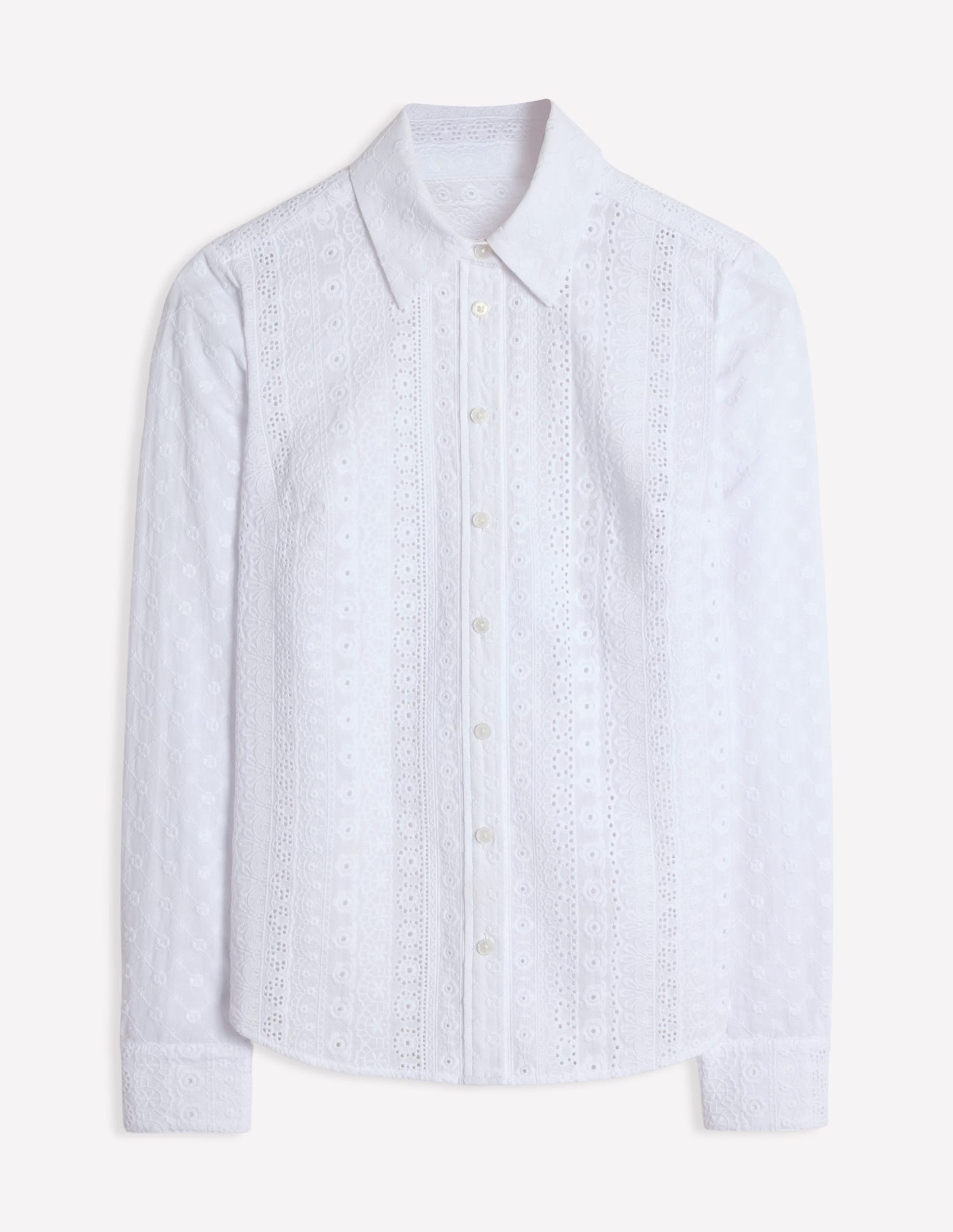 The minimalist white shirt has been given an intricate makeover. Our Sienna design is imbued with rows of intricate lace and embroidery.