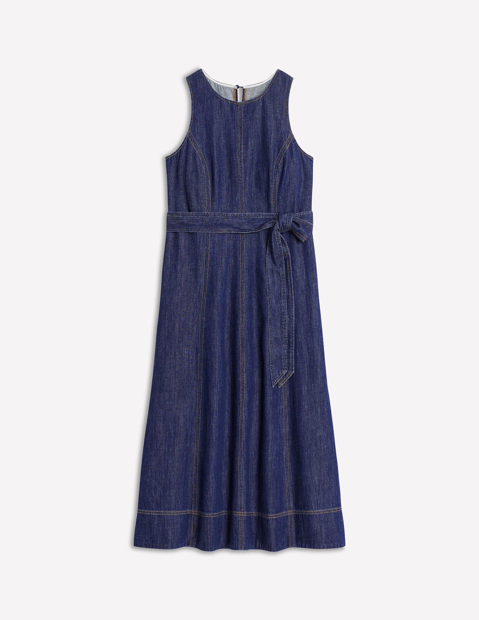 This sleeveless denim dress is like a new best friend: it’ll make you feel good and always be there for you. The sculpted bodice shape and ever-so-slightly flared skirt with tie belt will see you through many summer memories.