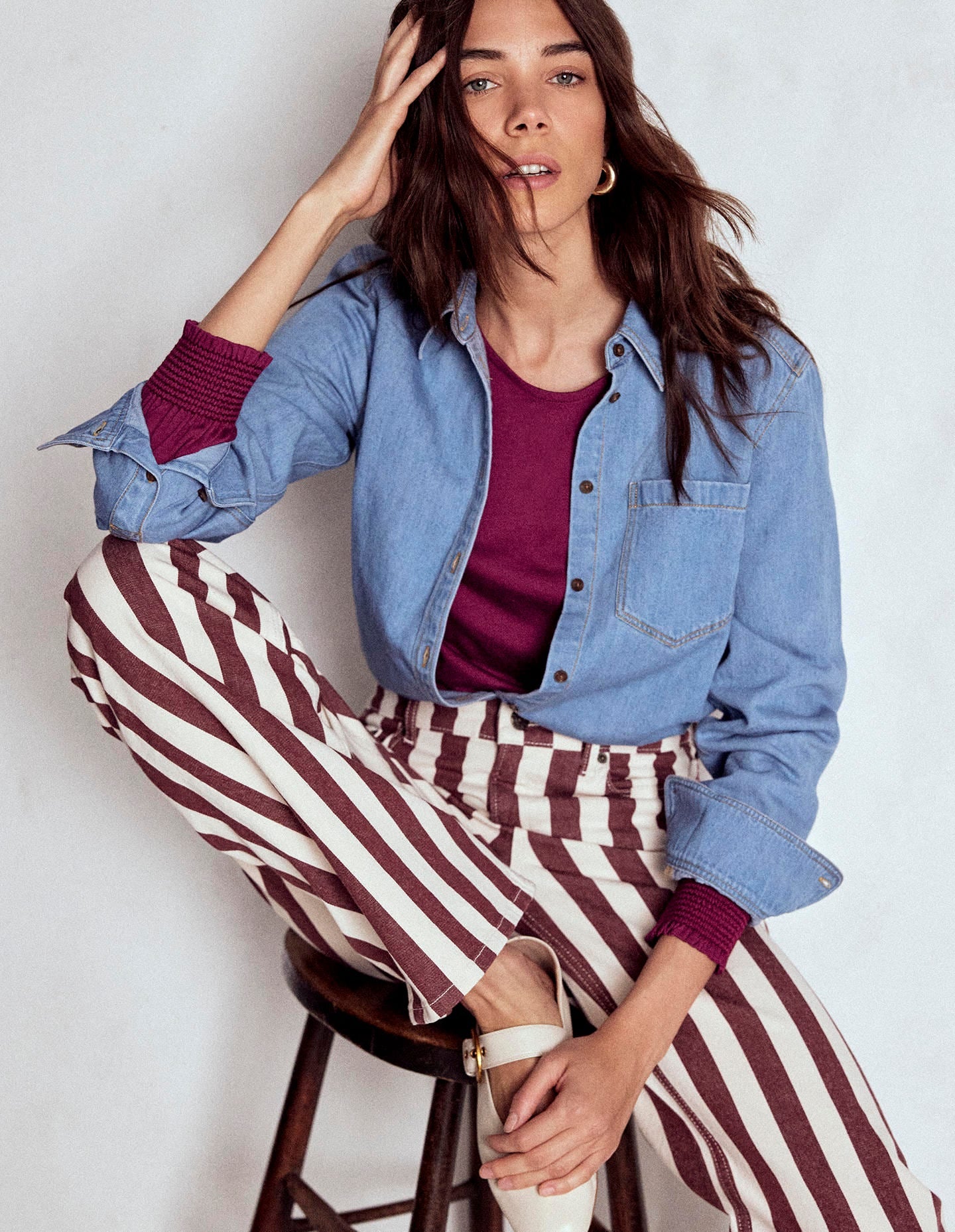 The smocked contrasting colour cuffs and supersoft cotton blend fabric give this basic a point of difference. Layer it under a knitted tank or wear alone tucked into high-rise jeans.