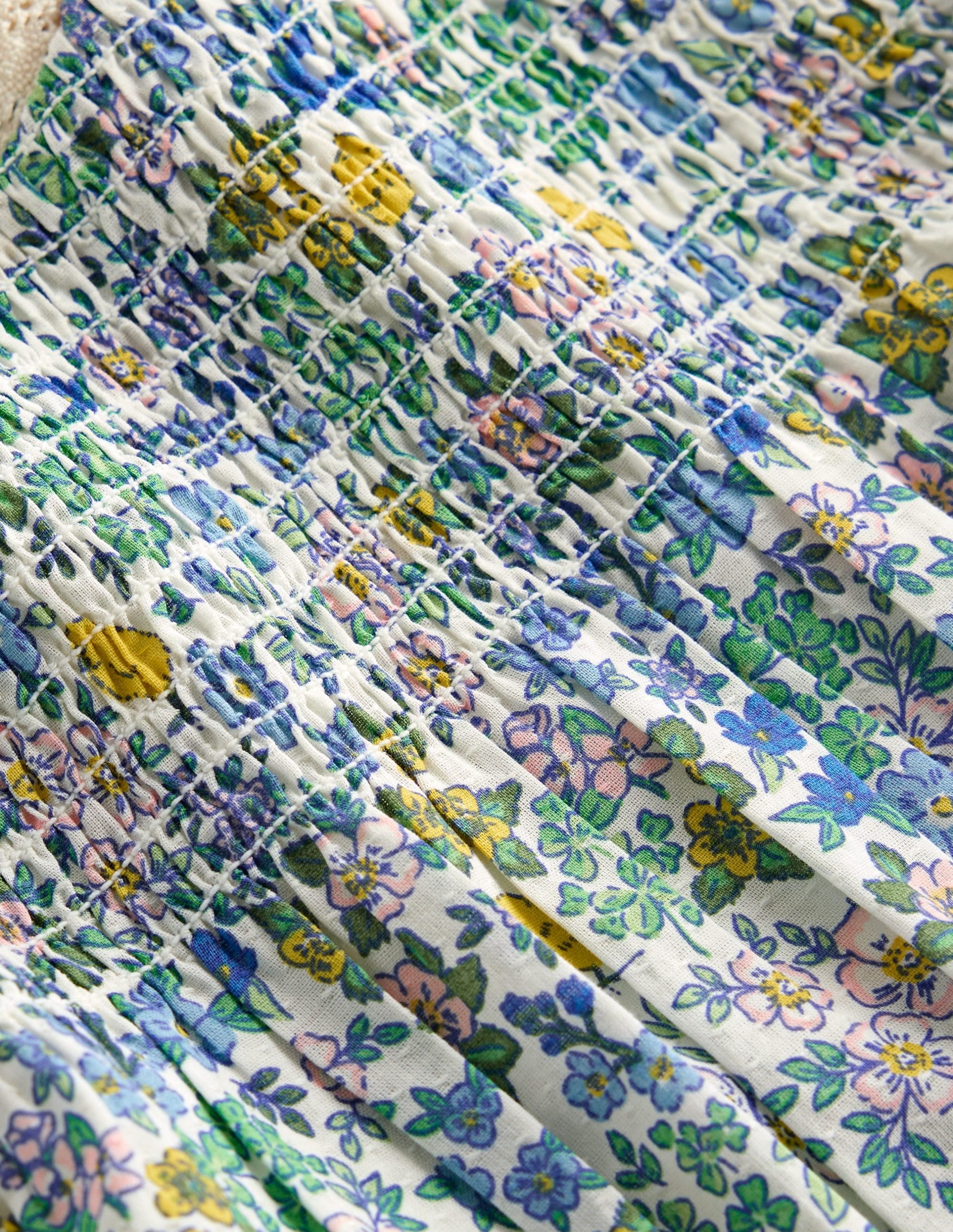 This Dorothy blouse has it all?? ditsy floral print. smocking at the top. and frills at the shoulders complete with scalloped edging.