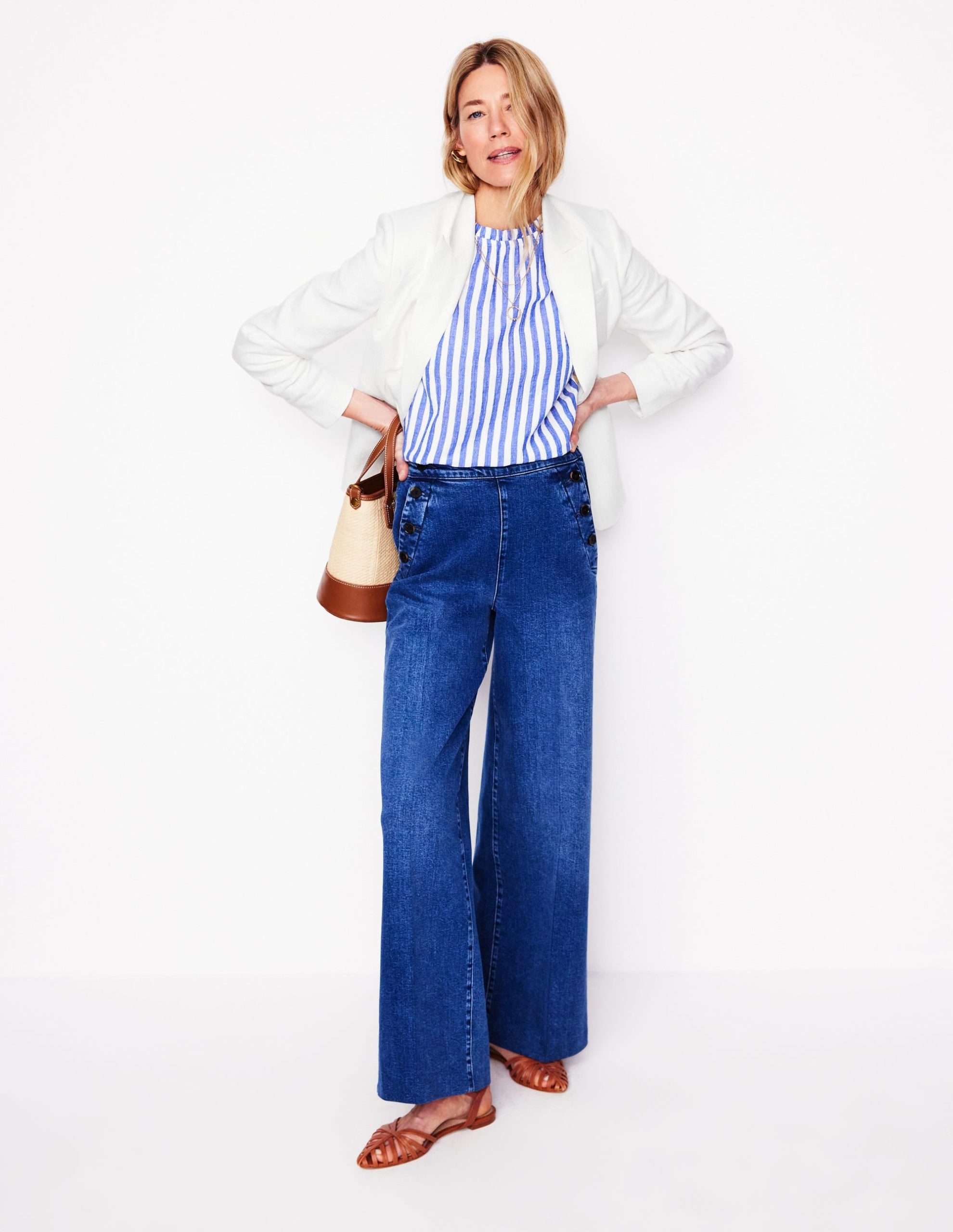 Our Stamford blazer is a lesson in classic tailoring. Crafted in linen. it’s cut to a semi-fitted. simple-breasted shape with a revere collar. sleeves. contrast piping and welt pockets ?C details that wouldn’t look out of place on Savile Row. we reckon.