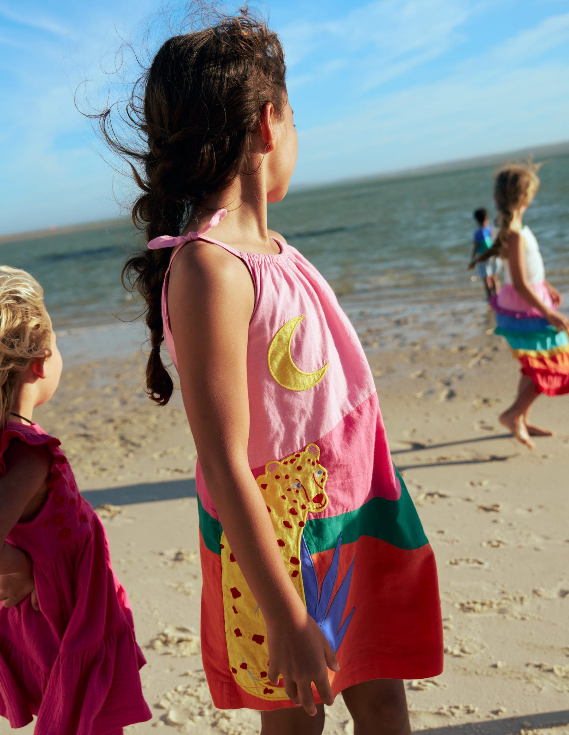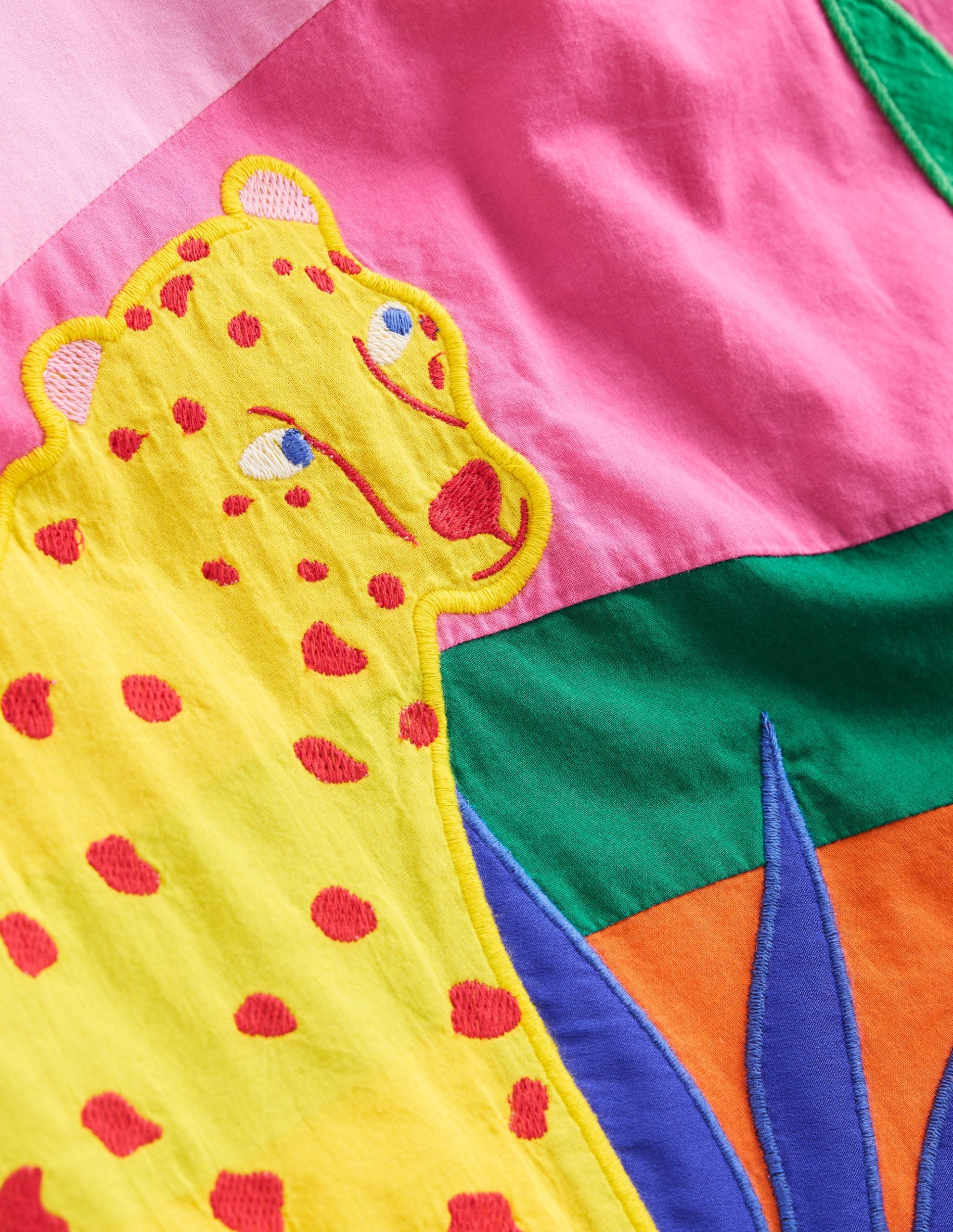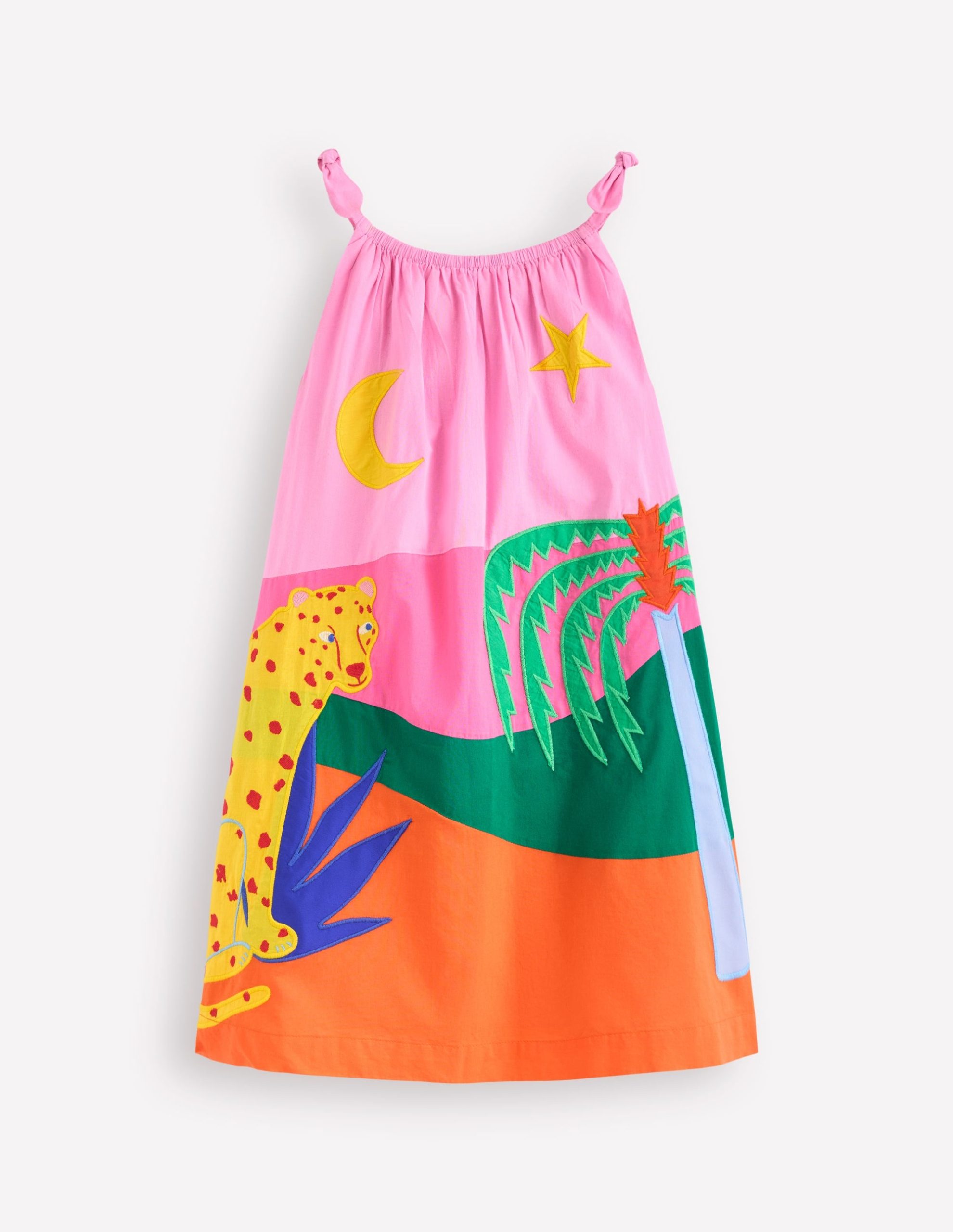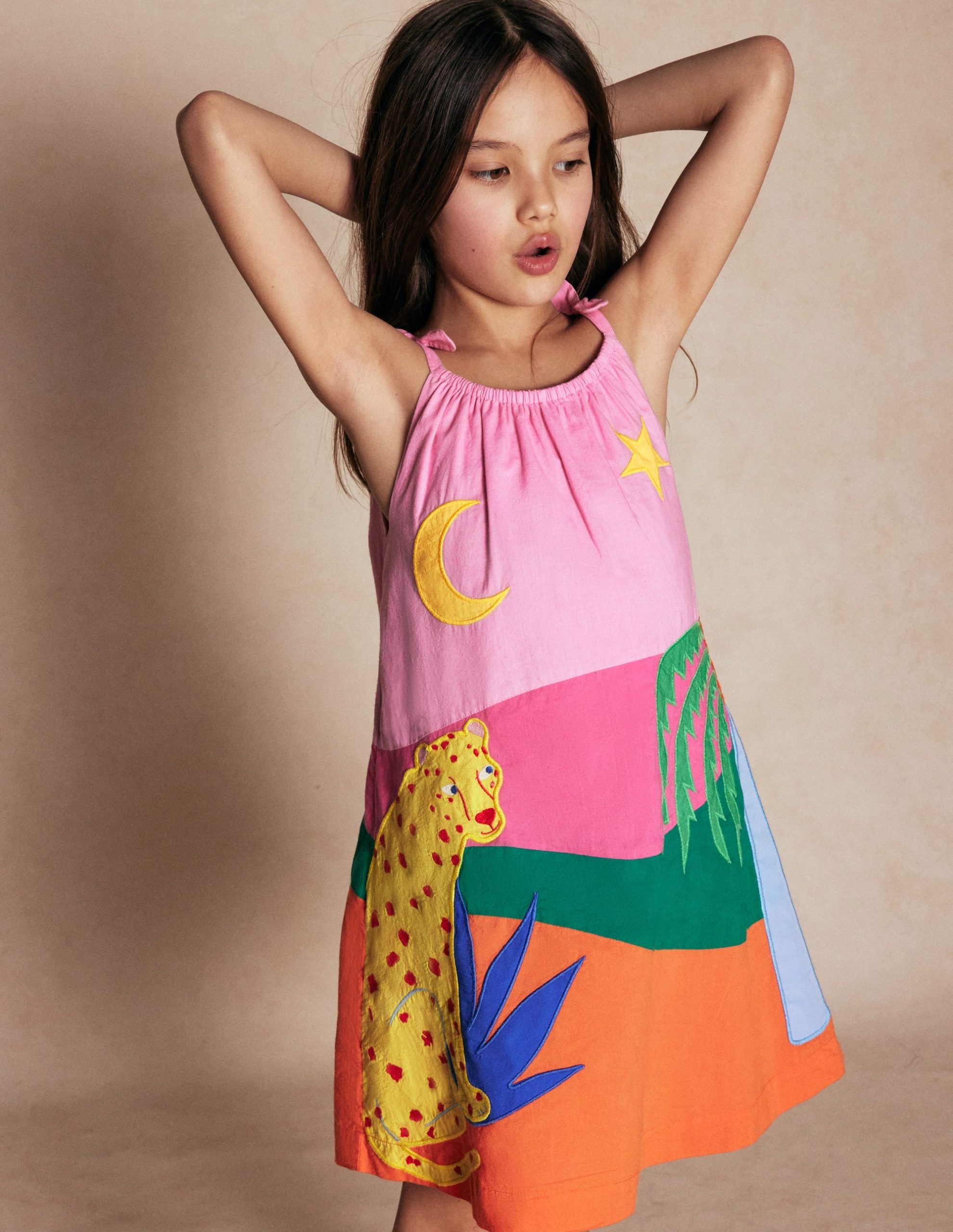 Need to put Mini in a good mood? Try this strappy dress. Emblazoned with bright appliqu?? and cut with a full skirt. it’s primed for twirling and swirling. Matches with big smiles.
