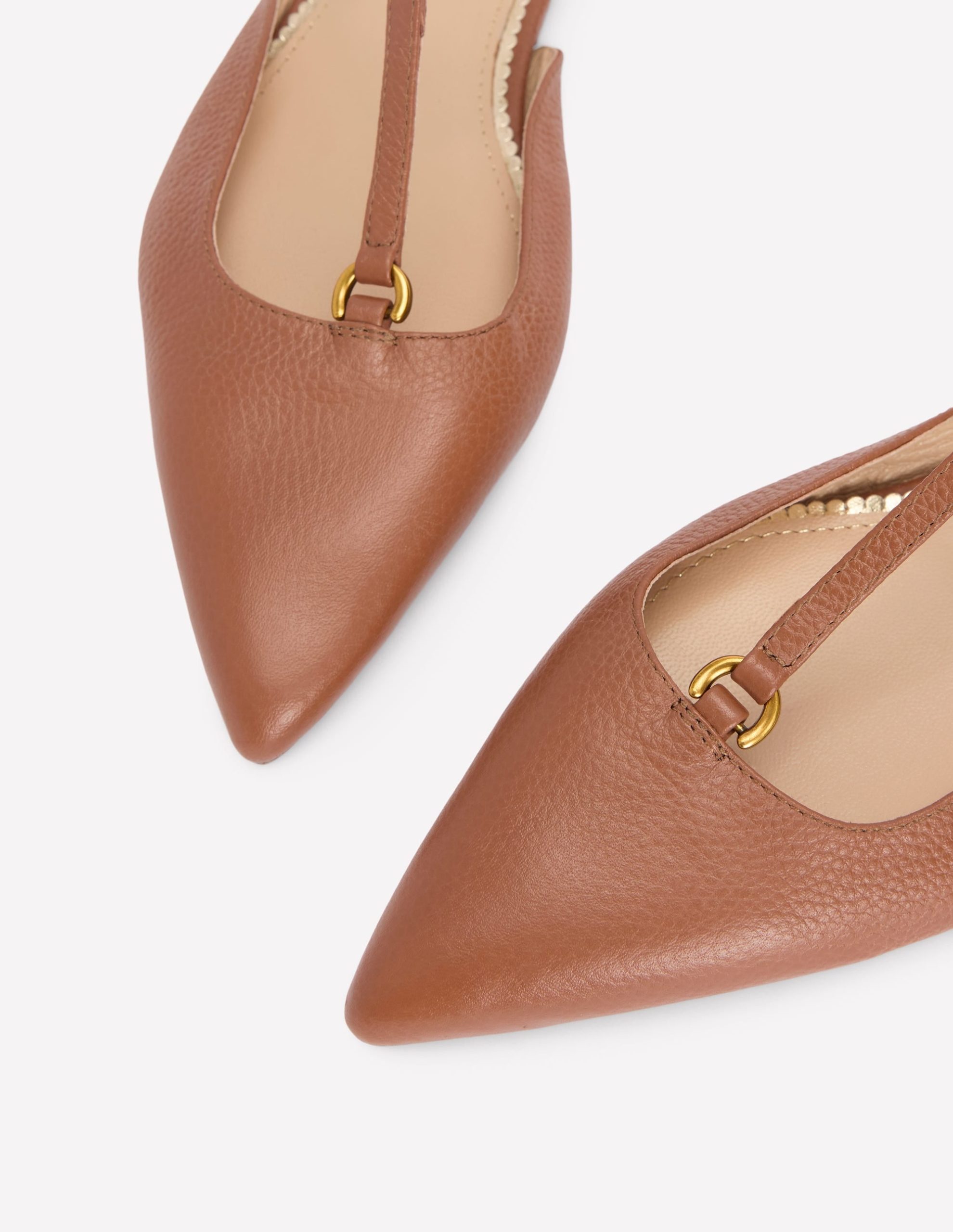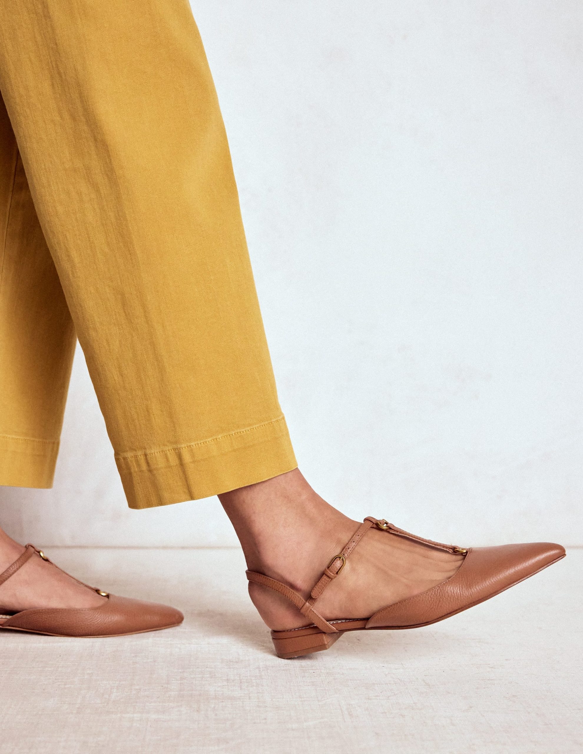 Pointed flats with a stylish (and adjustable) T-bar strap with gold D-ring details. Choose a colour and pair with cropped jeans so no one misses their splendour.