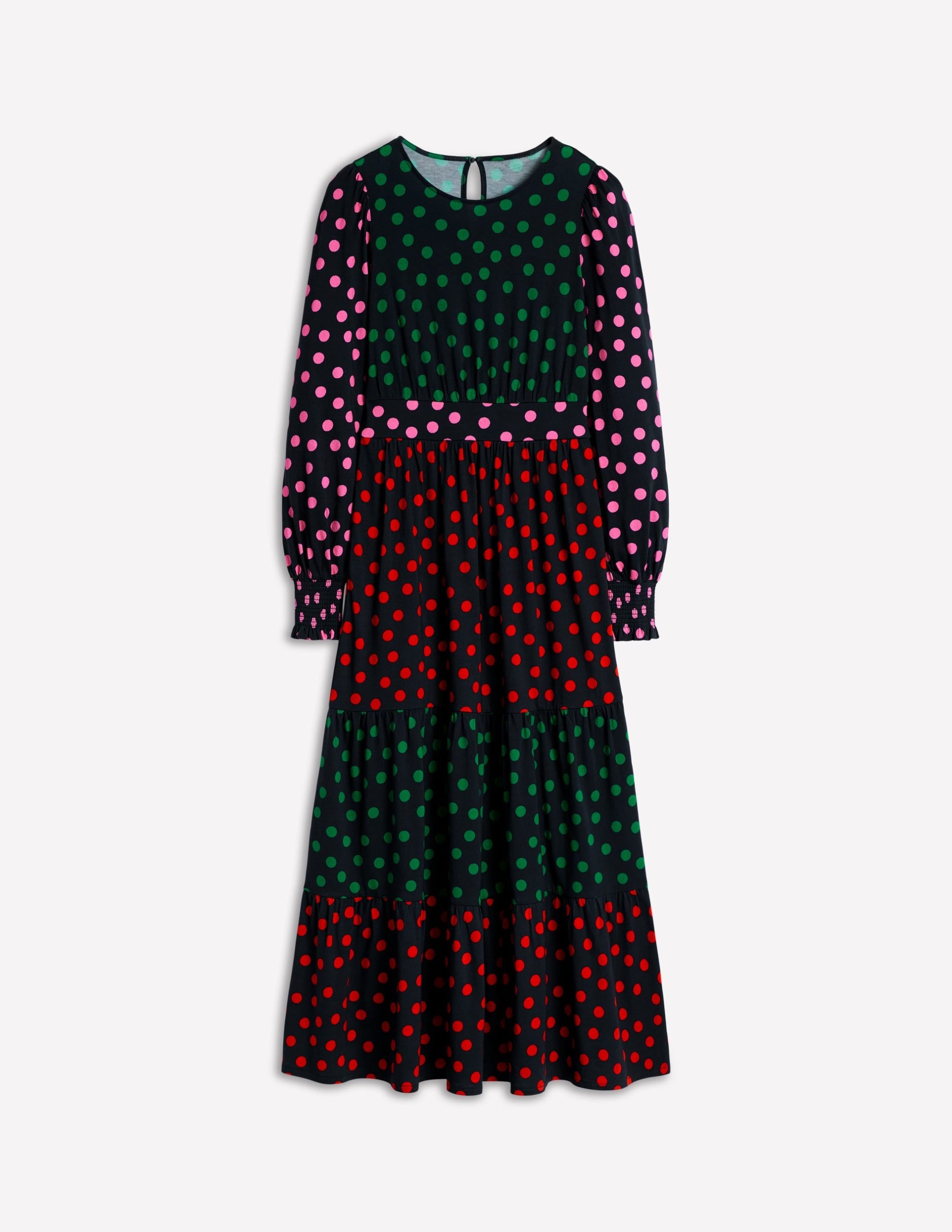 Tabitha Tiered Jersey Dress-Multi. Abstract Dot