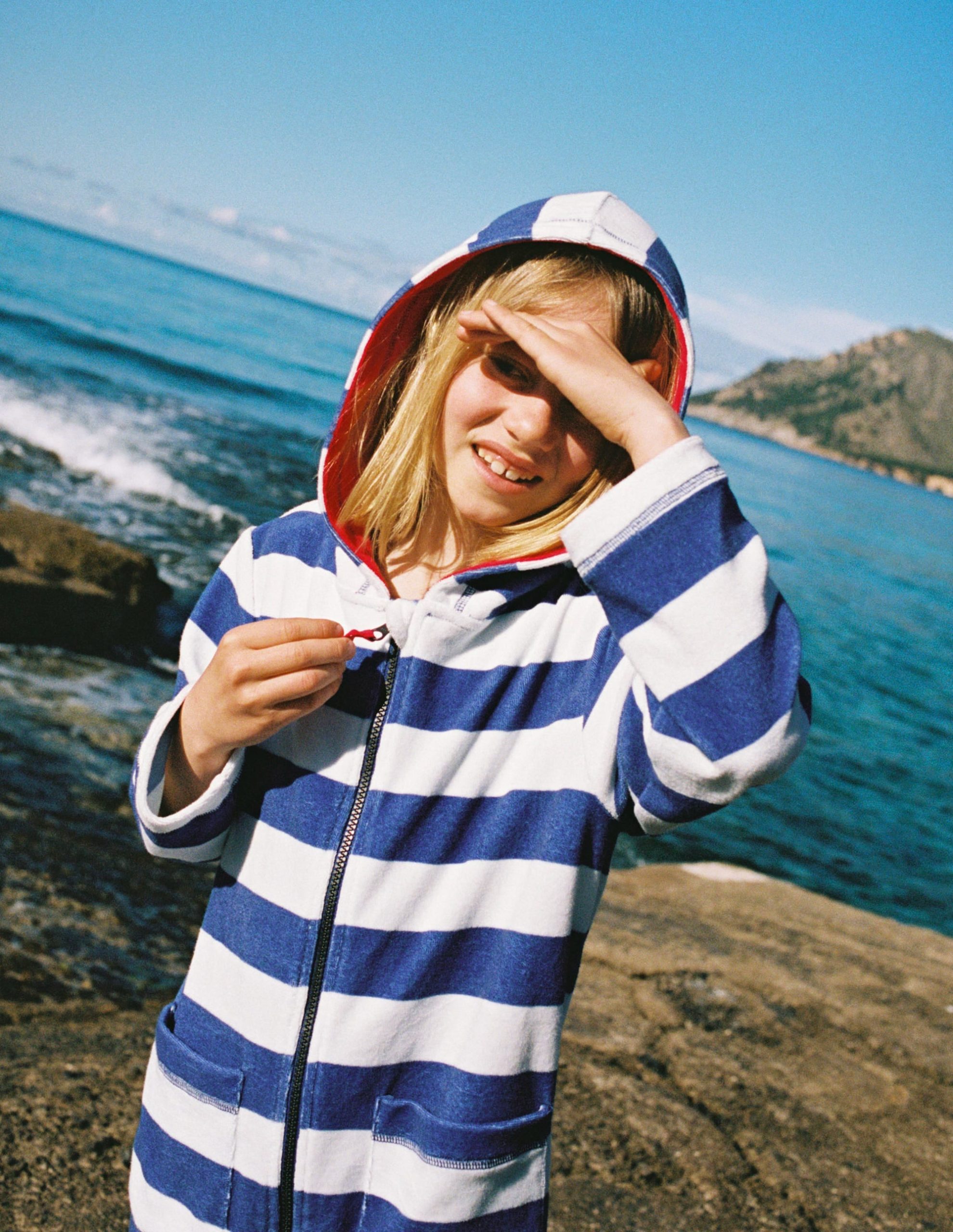 Towelling Zip-Up Throw-On-Sapphire Blue Stripe