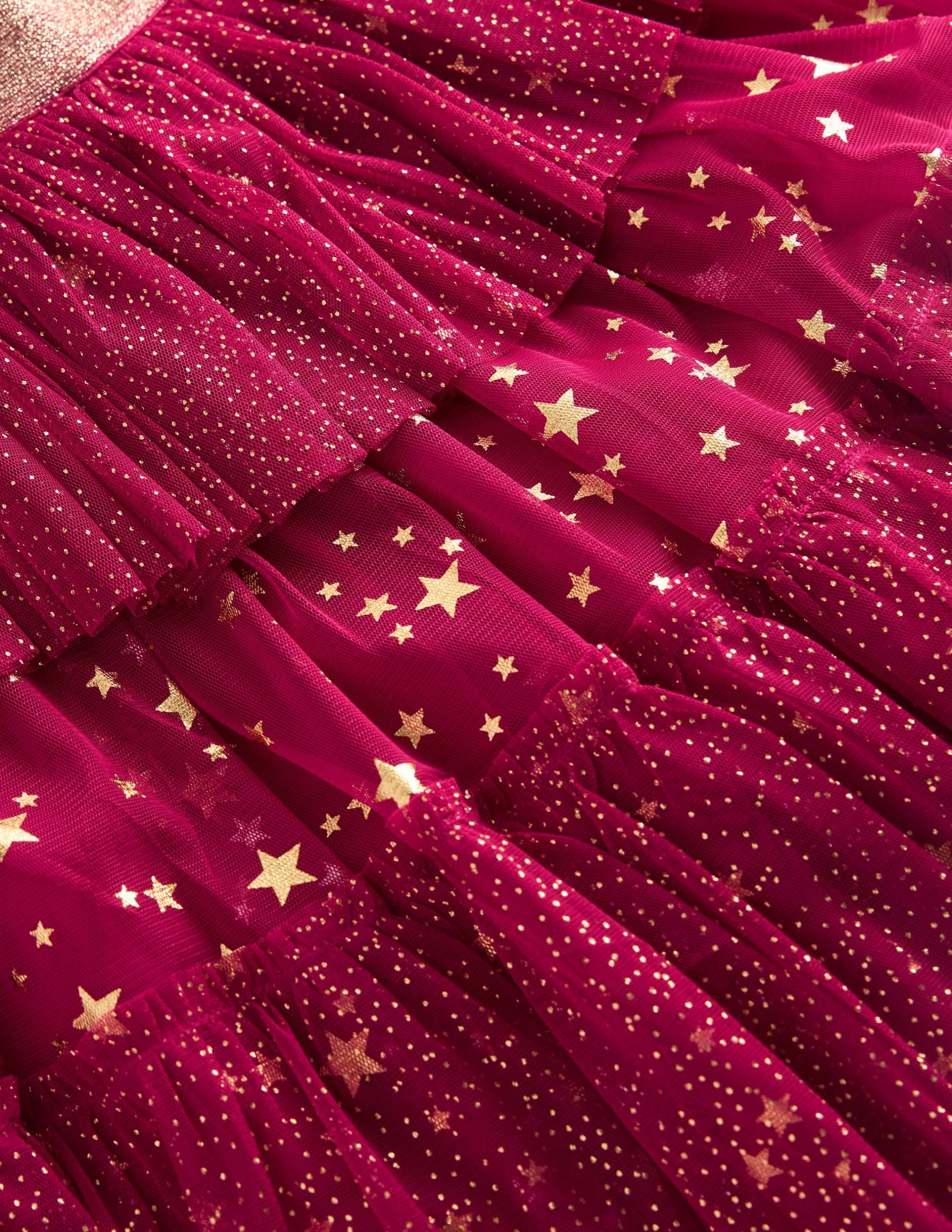 Making magic happen is no tulle order for us. What could be more enchanting than tiers of ruffly tulle decorated with stars? The midi-length adds drama to giddy twirls while the sparkly gold waistband demands attention.