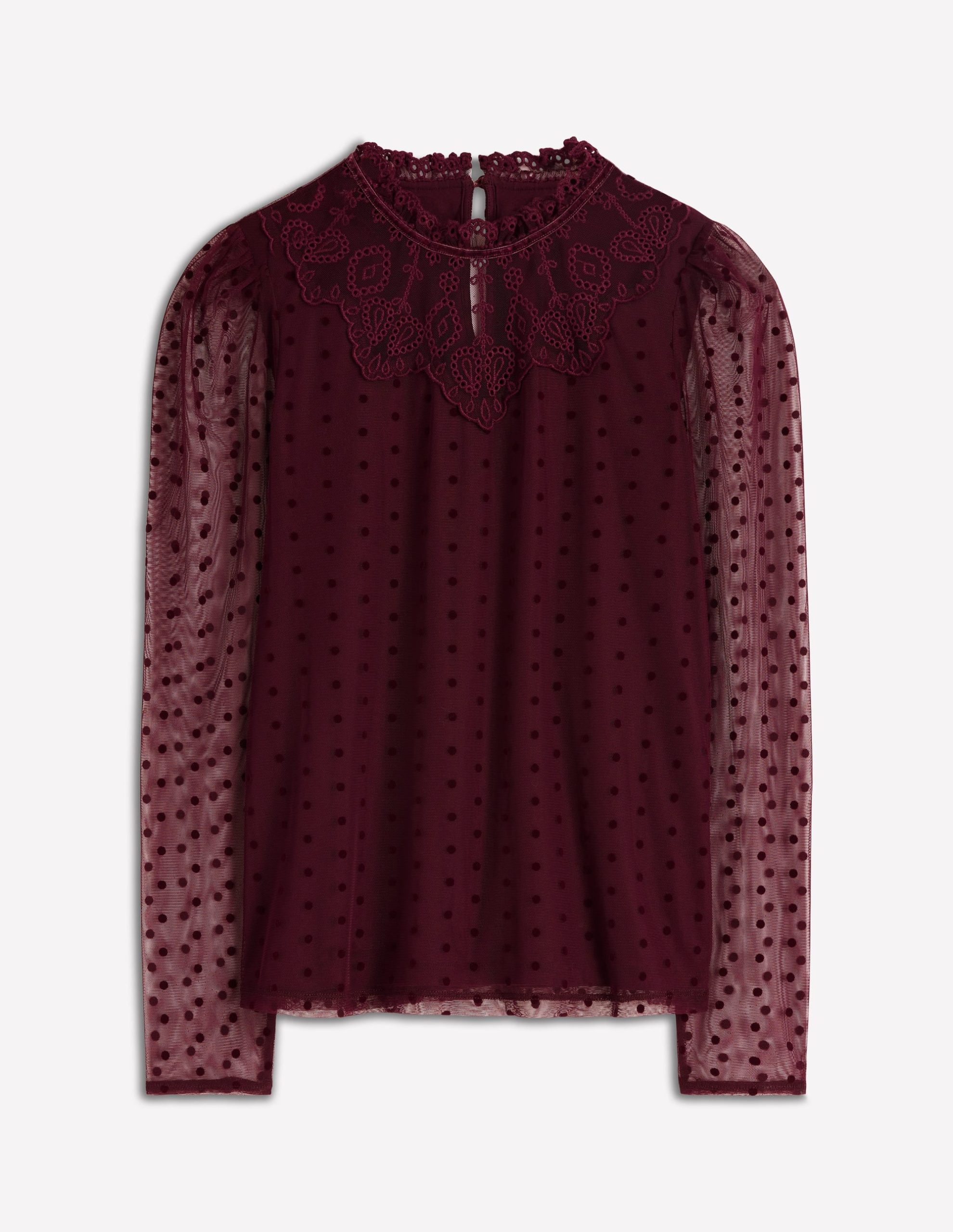 Tulle Yoke Embroidered Top-Dark Cherry