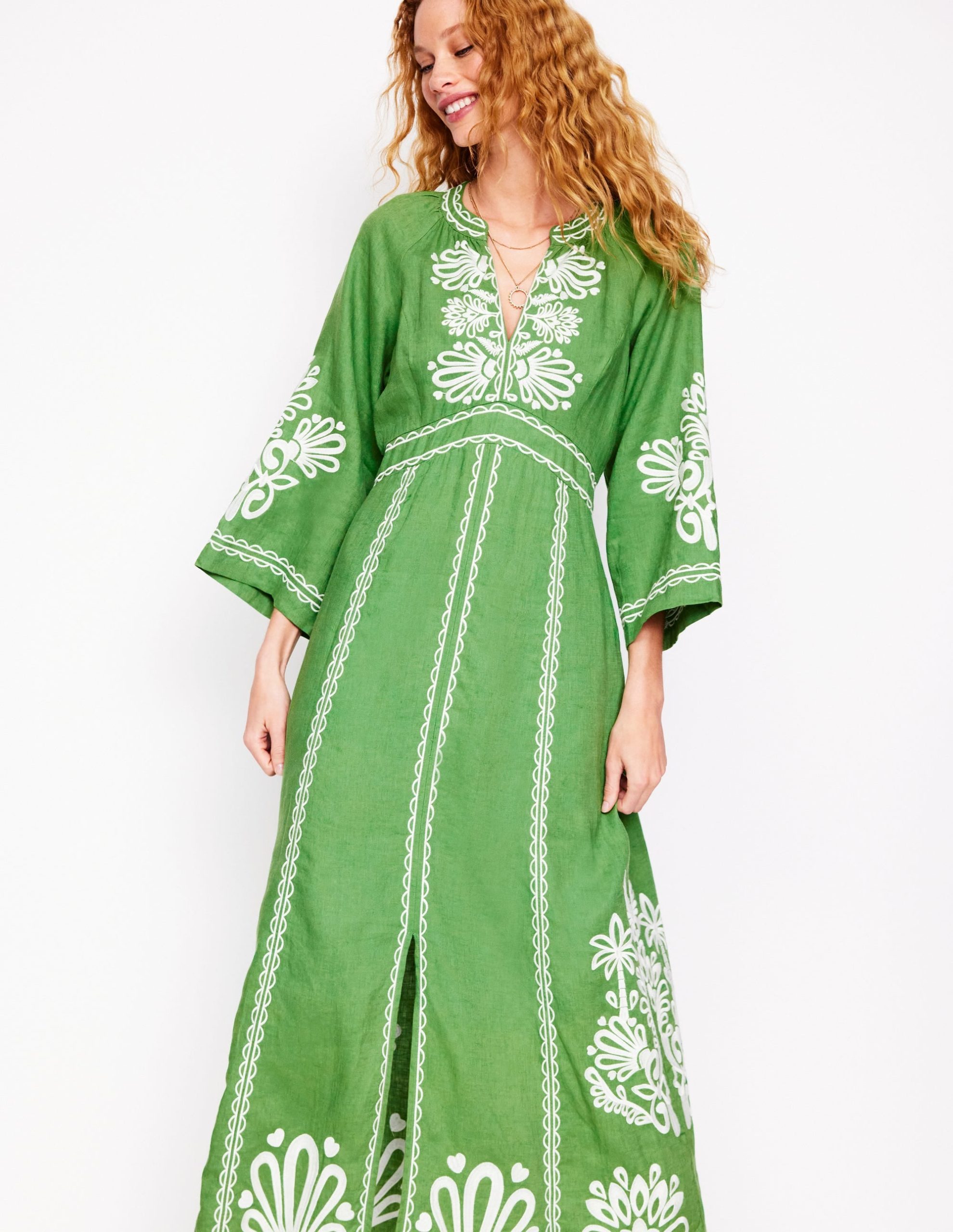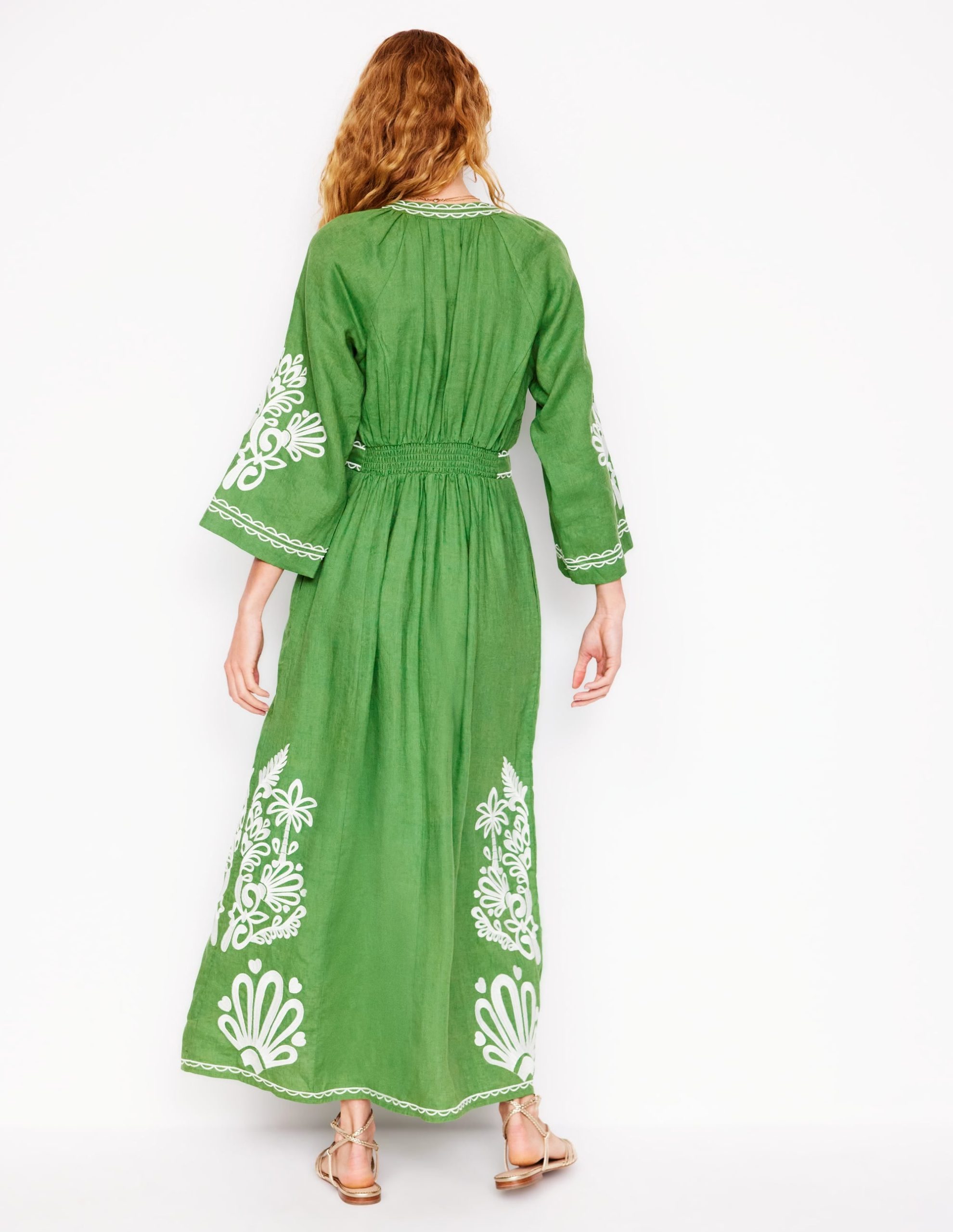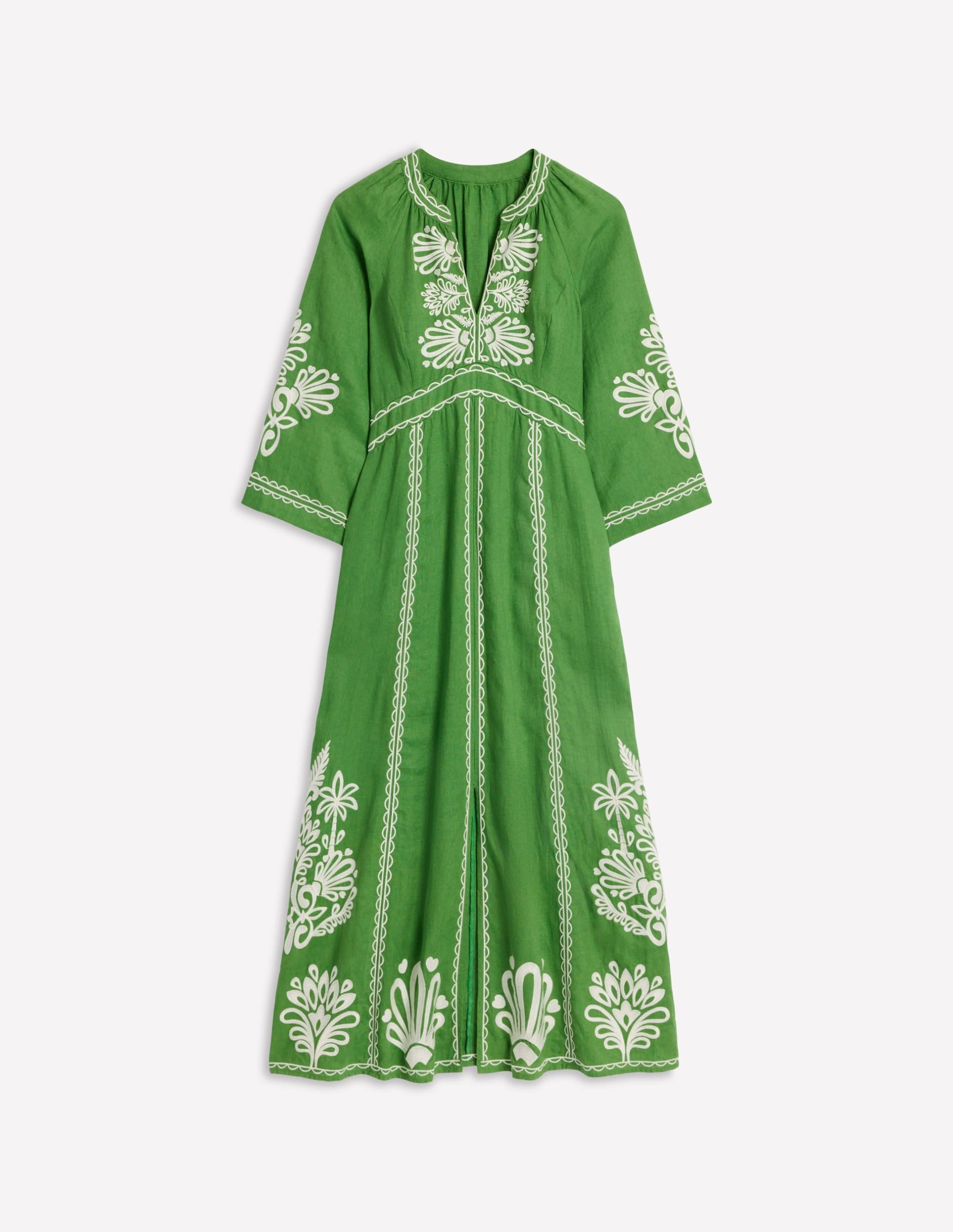 Una Linen Embroidered Dress-Paradise Green