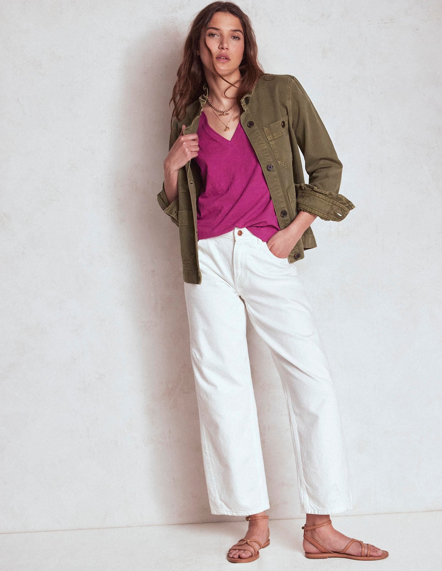 Offering a little more than your standard T-shirt. this soft cotton creation has pretty angel sleeves and a V-neck. And it comes in plenty of colours to choose from??