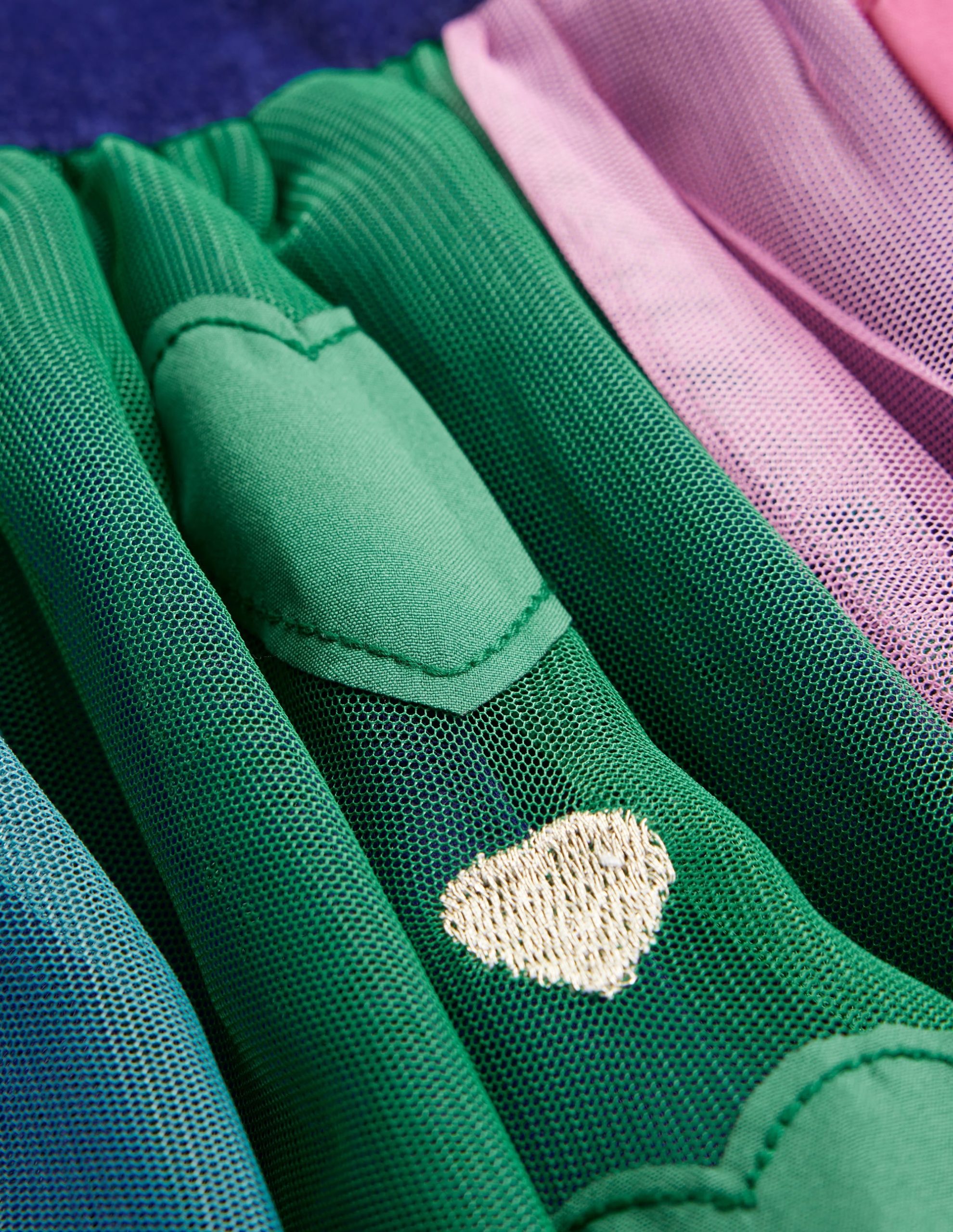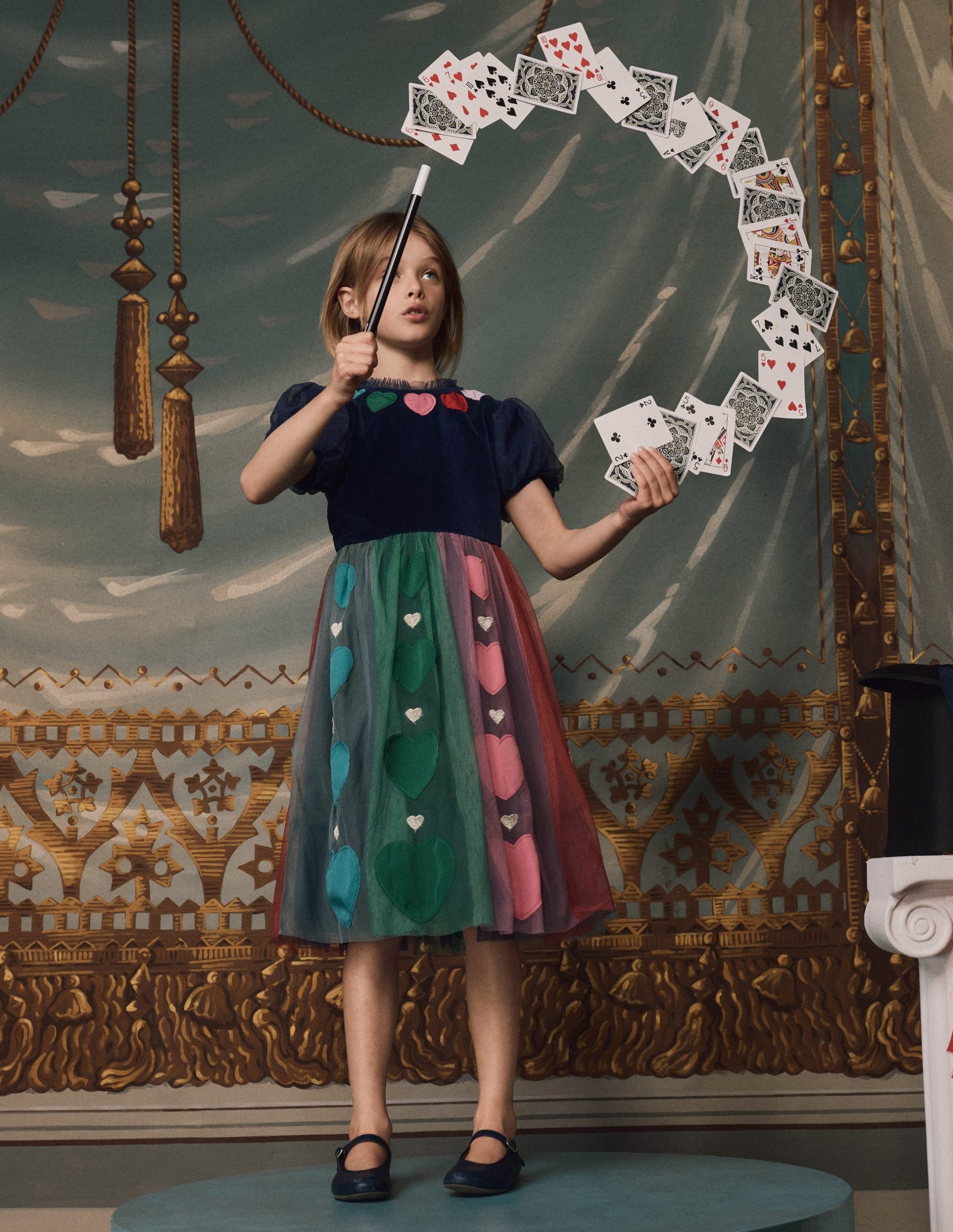 ‘Tis the season for festive family parties and trips to see Father Christmas. Mini’s will want to wear this dress for every magical moment coming up. With layers of tulle. soft velvet. puffy sleeves and colourful hearts ?C how could they not?