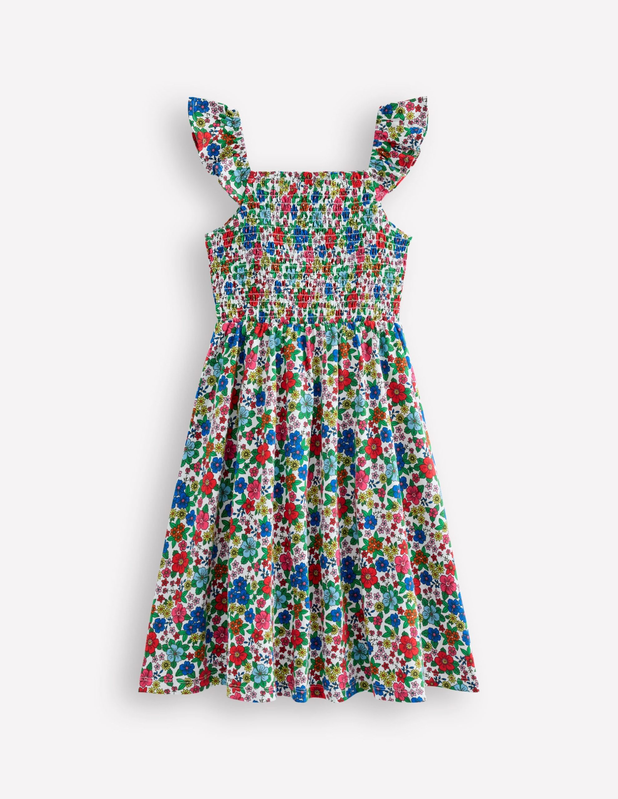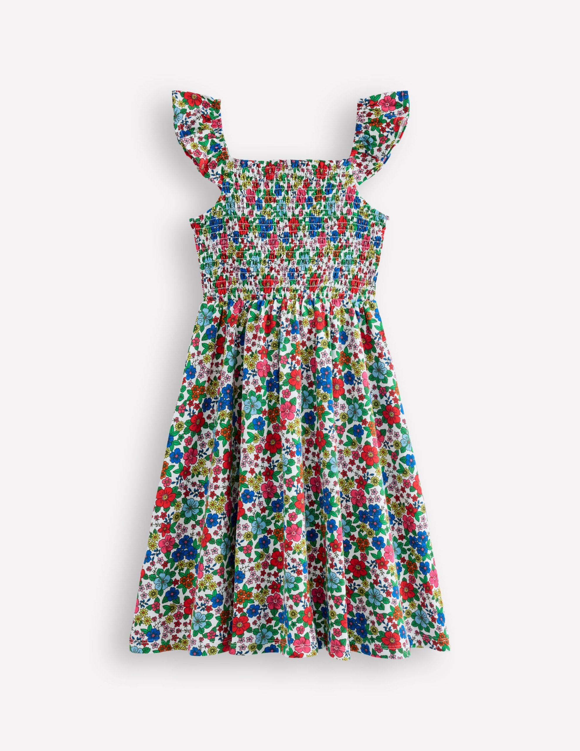 Flutter sleeves and a smocked bodice make this dress a dreamy option for your little ones. It’s made from cotton-jersey with a softly gathered skirt and out of this world bold prints.